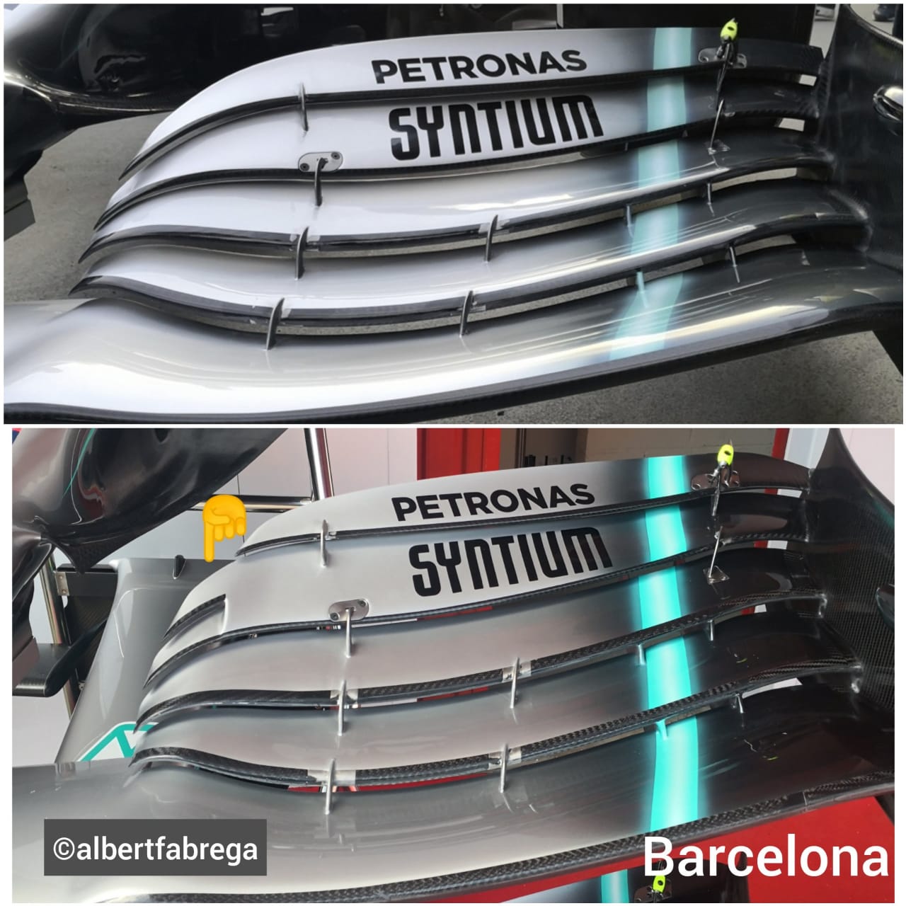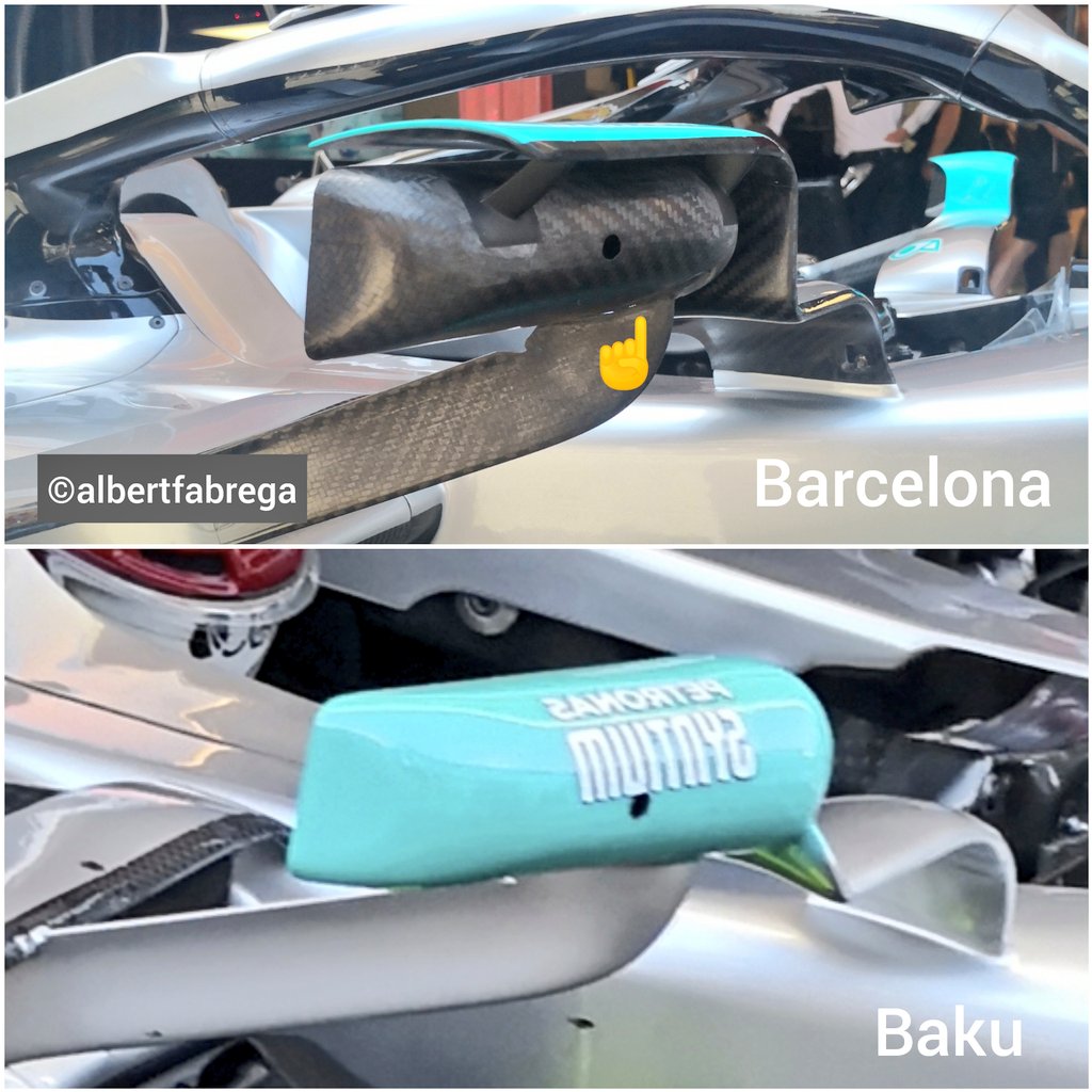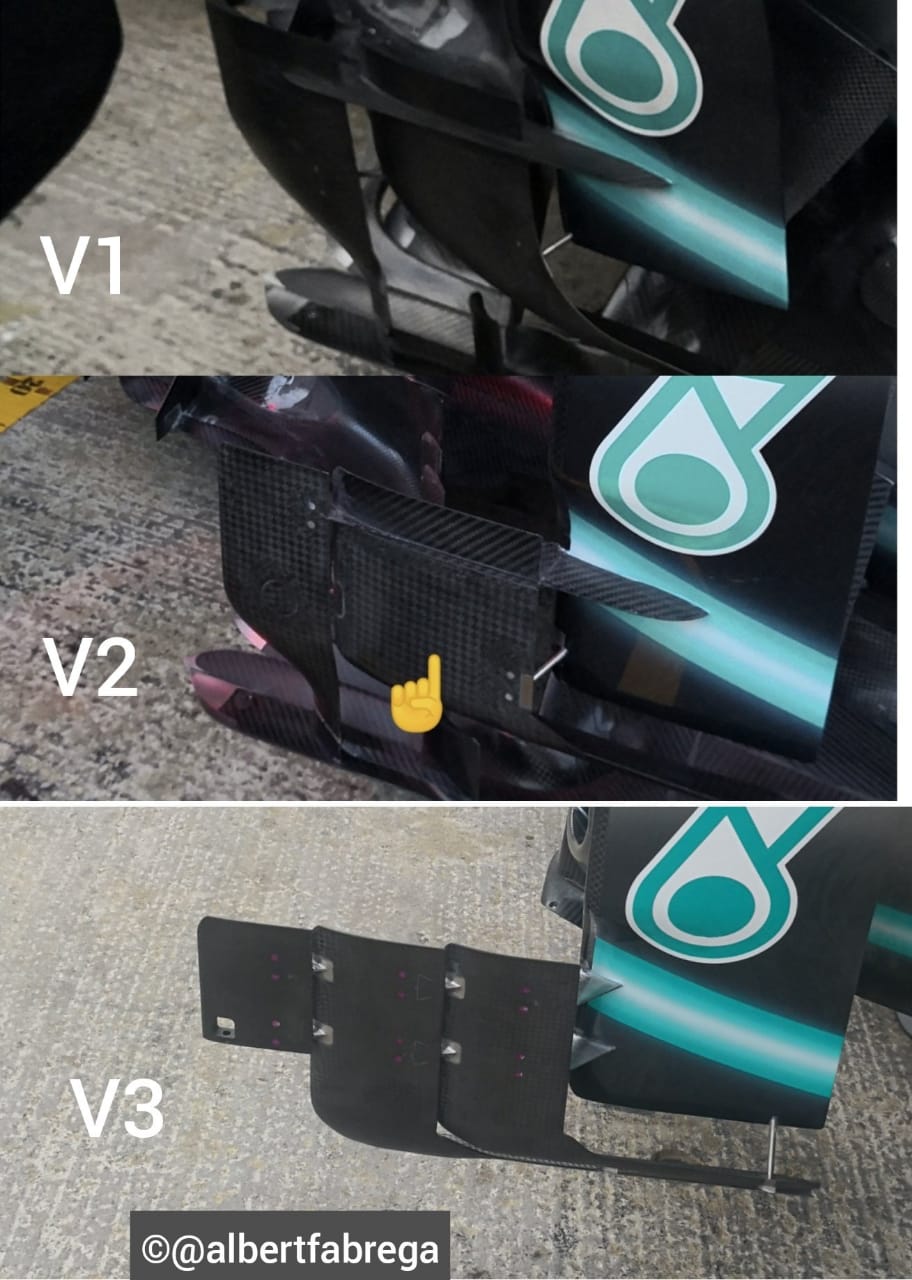 Los de Faneza igual llevan cambios, pero no los hemos podido ver con claridad, únicamente lo que nos han dejado ver ha sido cambios en el alerón delantero, el cual gana altura en comparación de Bakú y se recorta la parte inferior del endplate en la zona delantera y el alerón gana inclinación en los aletines hacia la parte interior