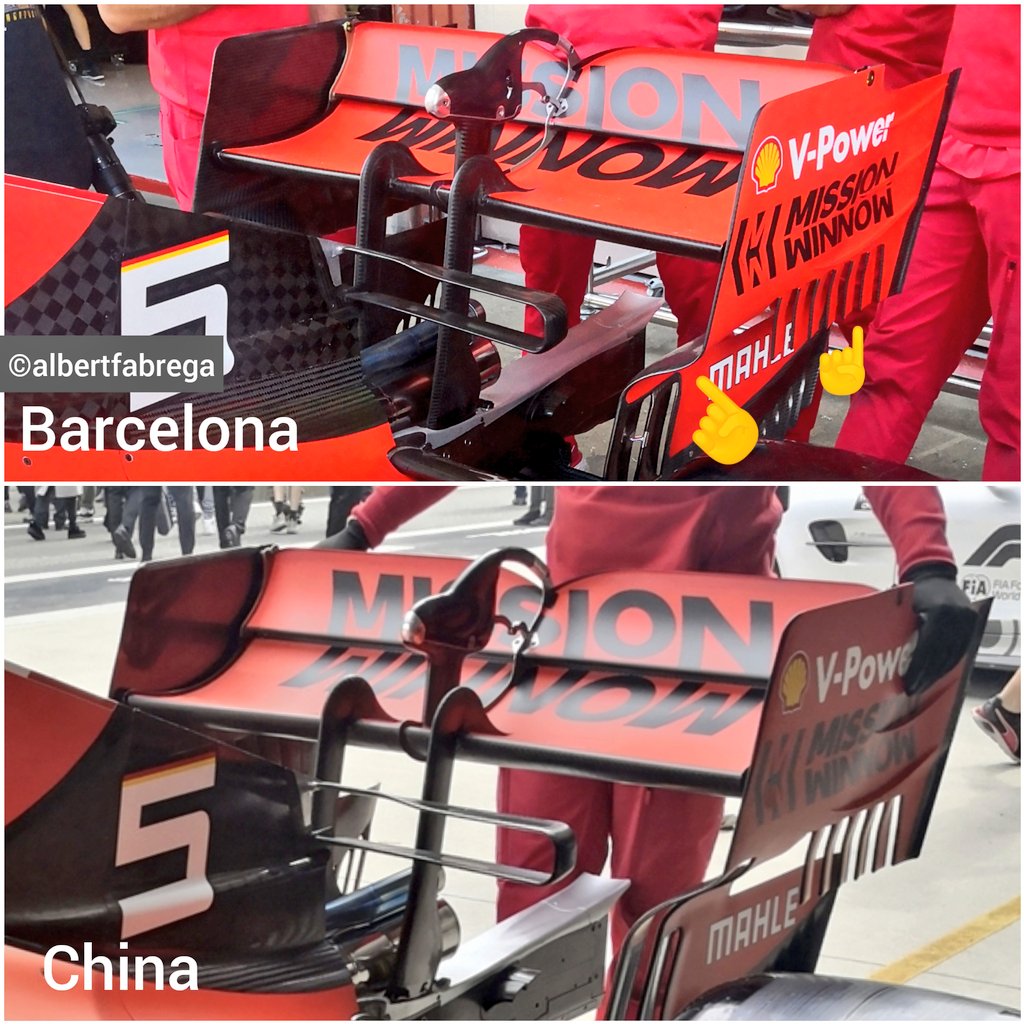 Ferrari fue el primer equipo que dijo llevar actualizaciones en el motor pero aparte de ello ya han dejado ver las evoluciones aerodinámicas que llevarán para este fin de semana. Algo que podemos notar, es que la cubierta motor llevará recortada la parte inicial de la “Aleta de tiburón”  algo que no habíamos visto hasta el momento, otra mejora que llevan es el alerón trasero, la zona inferior de los laterales es recortada, desaparece un bordillo que van en junto al neaumático y se le agregan otros bordillos 2 más en la zona media del lateral.