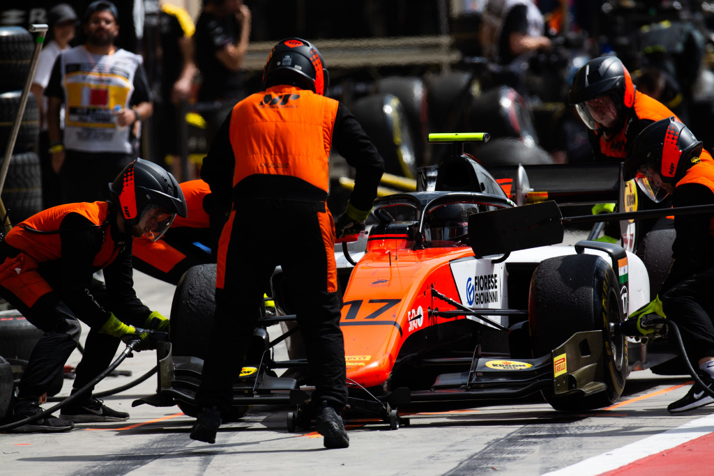 Si bien no es habitual que los equipos realicen pitstops en la carrera Sprint que se disputa a 23 vueltas, lo agresivo del asfalto en Bahrain y las altas temperaturas del desierto abrieron las estrategias y las mismas terminaron siendo decisivas también en la segunda cita de la F2.