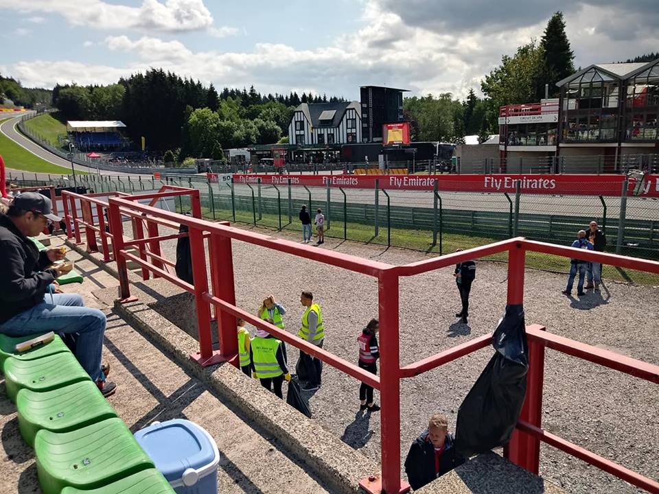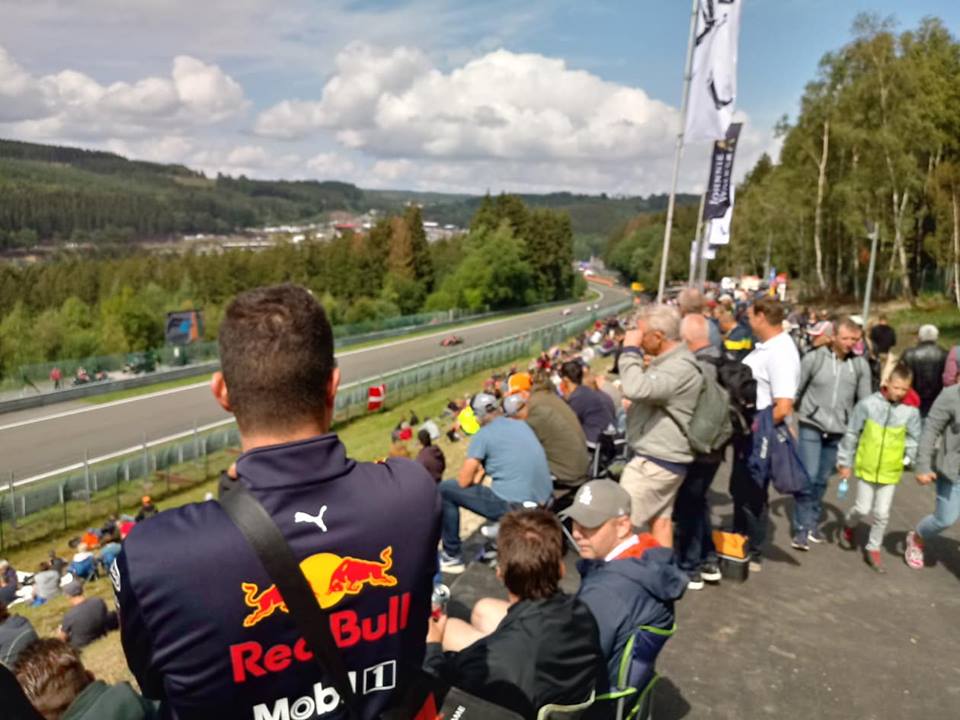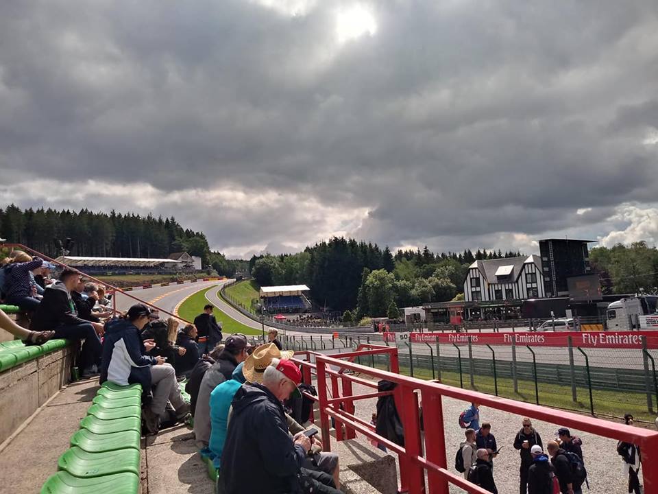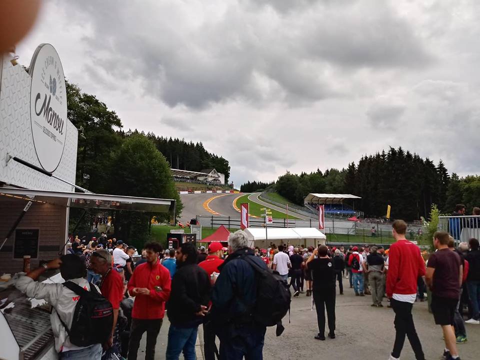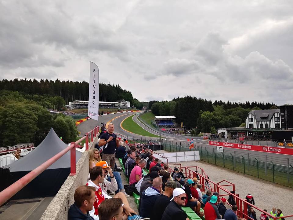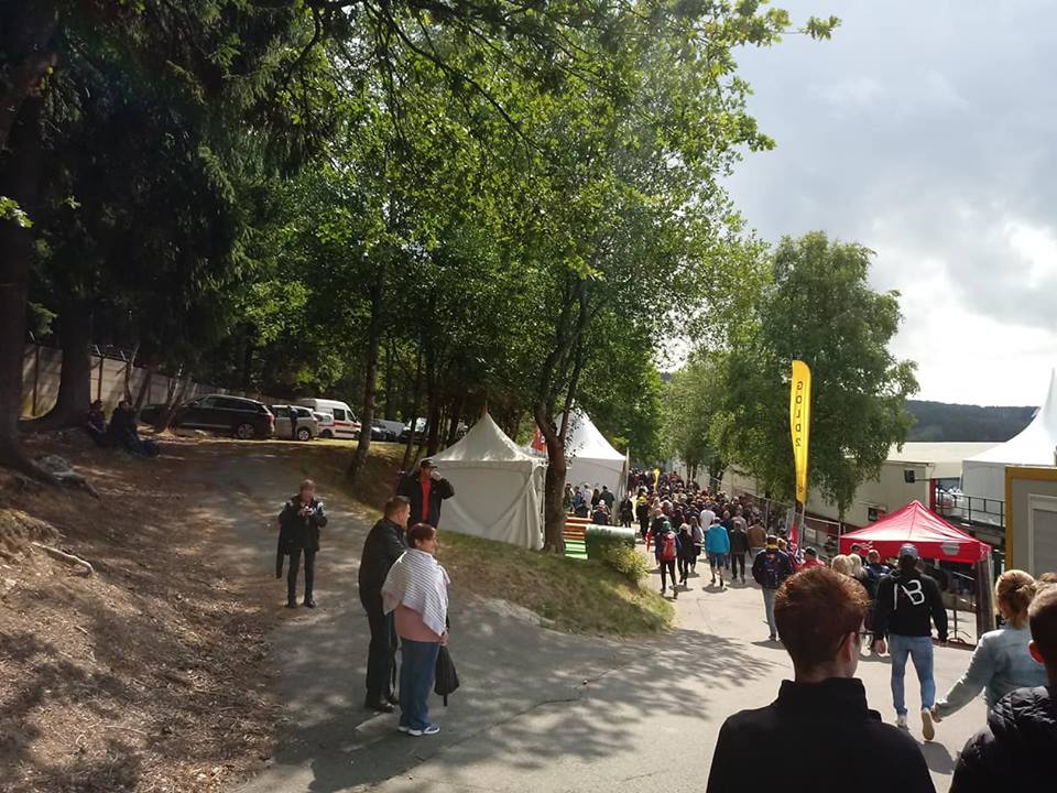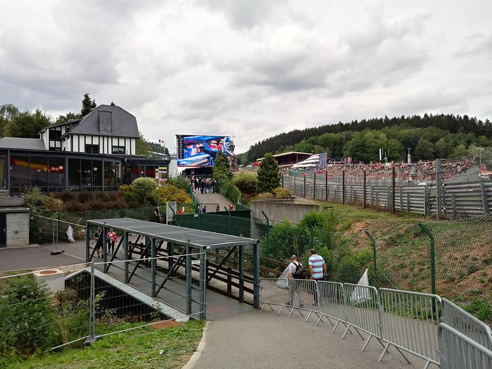 Recorrí todo el circuito, con la entrada general se accede a todo el circuito menos a las tribunas, pero mucha gente lleva su silla plegable y va buscando ubicación. Yo tengo tribuna silver 2 en la subida de Eau Rouge pero hoy casi ni me senté aproveché para ir viendo todas las curvas. Es bastante complicado llegar al circuito cuando ya estás cerca, hay muchos policías guiando y cortando. Hay que estacionar bastante lejos porque los estacionamientos cercanos se agotaron rápido. Unos 20 minutos caminando hasta llegar a mi entrada. La salida también se hace lento, más teniendo en cuenta que está en pleno bosque con calles angostas.