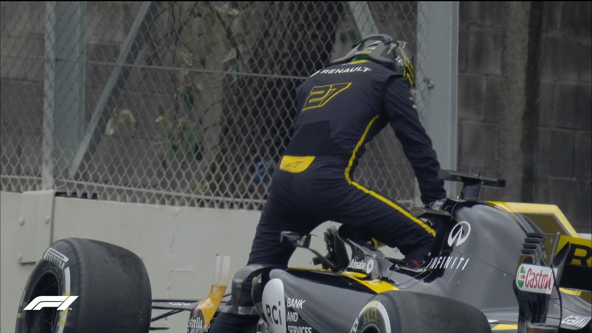 Nico Hulkenberg causó el primer accidente del fin de semana en Brasil. superando los límites a la salida de la curva 13, tocó la tierra y perdió el control de Renault, yendo directo al muro y ocasionando la salida de la bandera roja.