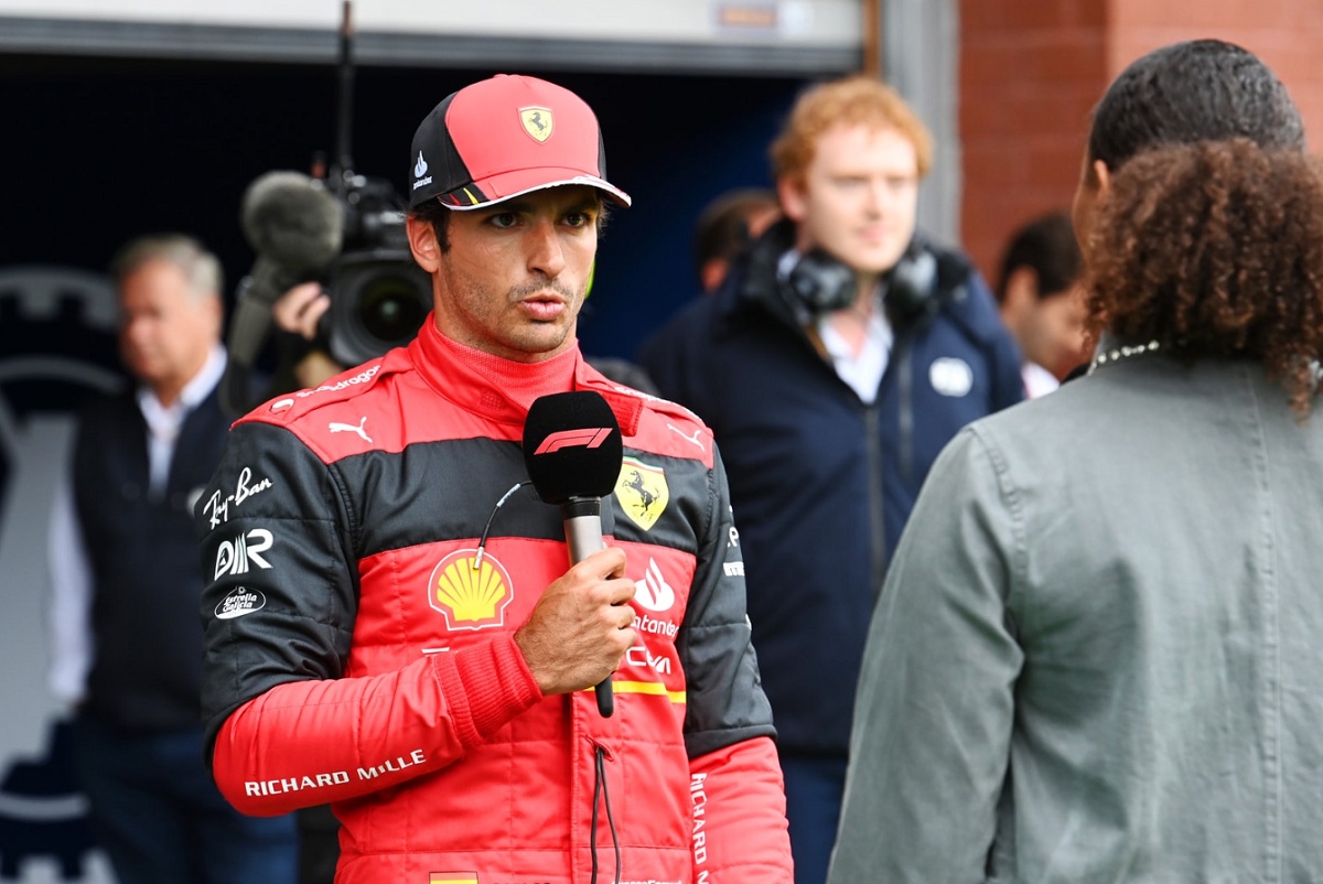 Sainz hablando para la transmisión oficial después de la Qualy. (Mark Sutton)